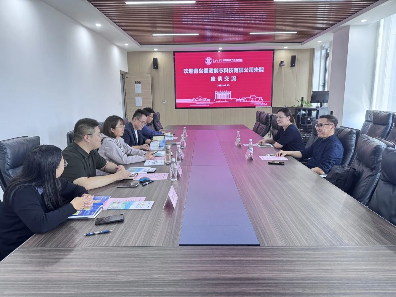 9月25日下午,青岛镭测创芯科技有限公司副总经理魏磊、人事经理李婷到能电学院座谈交流。能电学院副院长耿莉敏、创新创业教育中心主任杨阳、学生工作办公室副主任刘泽、团委书记刘欣和团委副书记于晓虎参加会议。
