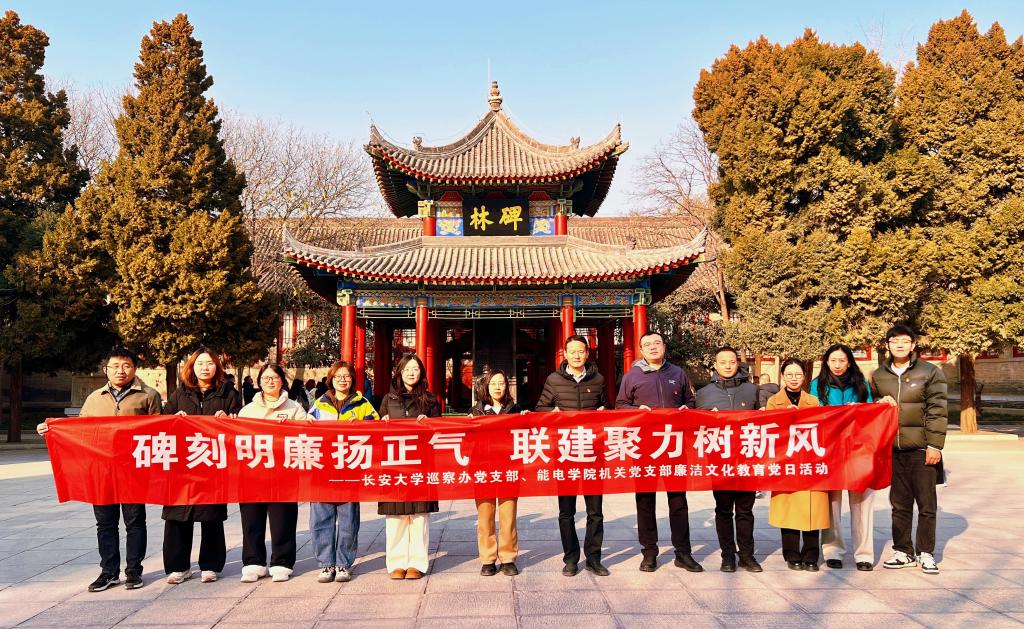 为深入学习贯彻党的二十届四中全会精神,纵深推进全面从严治党,筑牢廉洁自律和拒腐防变思想防线,12月26日下午,能电学院机关党支部联合巡察办党支部赴西安碑林博物馆开展“碑刻明廉扬正气·联学聚力树新风”主题党日活动。巡察办主任李武尚、院党委书记王艳带队,支部党员及学院统战成员、高层次人才代表参加此次活动,在千年碑刻间感悟廉洁文化,凝聚奋进力量。