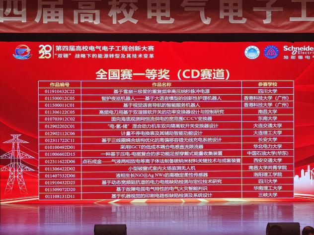 在决赛中,我院杨雄政、周霄、郭蓉、吴浩翔、郑佳策团队聚焦“终端用能电气化水平提升”赛道,提出了高偏移容错无线充电系统的创新设计方案。作品围绕发展现状调研、关键技术攻关和硬件系统搭建,形成了完整的实施路径,并提出了系统在大偏移条件下的高效能传输、电磁辐射安全性控制及轻量化磁芯排布等关键问题的解决方案。凭借突出的技术创新与工程实现能力,团队赢得了专家评委的一致高度评价,最终斩获全国一等奖,徐先峰教授和宣亮老师获评优秀指导教师。