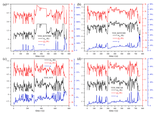 图2热电发电机系统在不同车型中的瞬态输出性能。