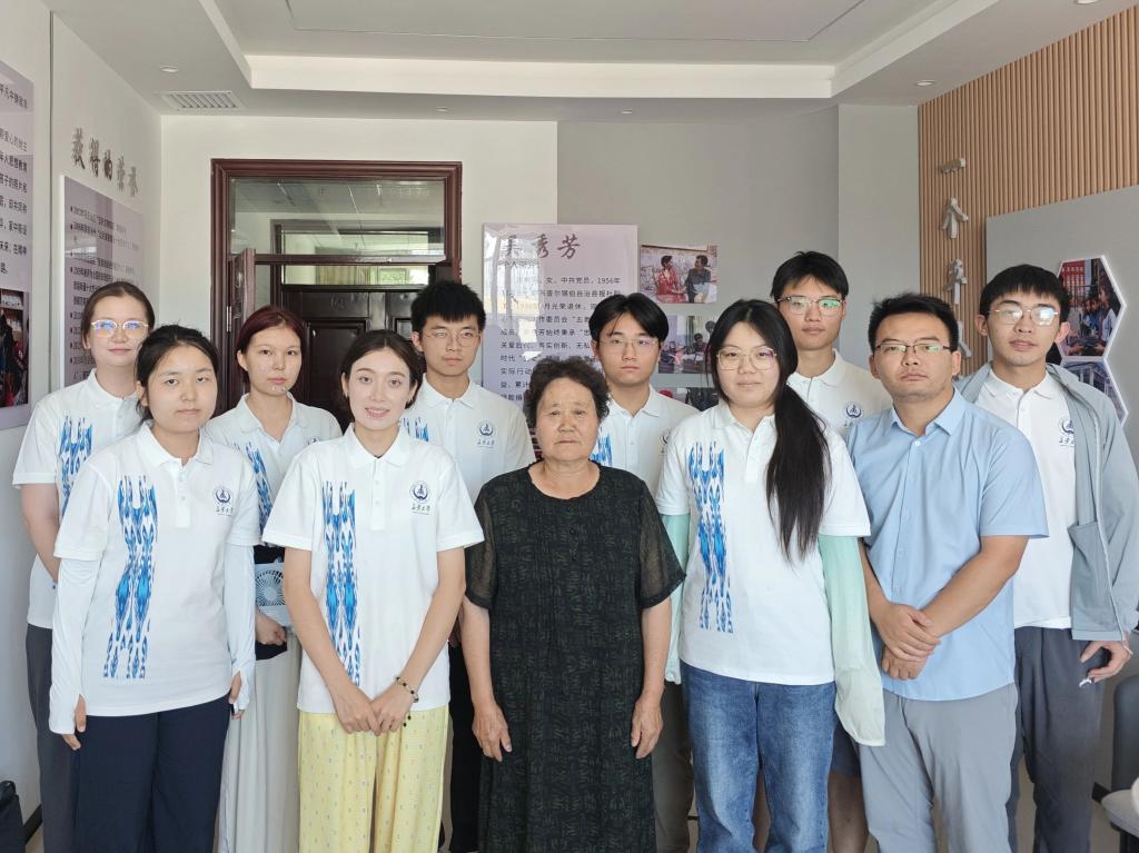 实践队在红石榴社区吴秀芳工作室,拜访了“全国民族团结先进个人”吴秀芳奶奶。吴秀芳奶奶与实践队员亲切交谈了一小时有余,队员们纷纷对吴奶奶不求回报、无私奉献的精神品质表示赞叹。“我们两个家庭结合以后,共有8个孩子,是锡伯族和汉族两个民族组成的一个家庭。”吴秀芳与崔国新共同养育了8名子女,2000年起,随着家庭条件的不断改善,吴秀芳开始投身公益事业,用自己退休金和卖牛奶的钱,资助贫困学生,20多年来,资助学生涵盖汉族、维吾尔族、哈萨克族、回族等多个民族。