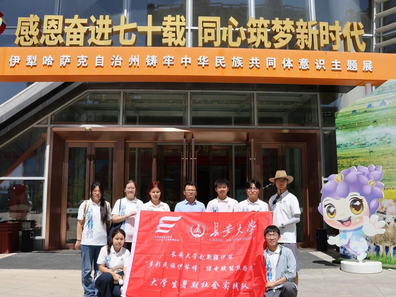 为深入学习贯彻习近平总书记关于铸牢中华民族共同体意识的重要论述,让青年学子在实践中感受民族团结的生动实践与文化传承的深厚底蕴,7月22日,长安大学“多彩民族伊犁情·绿电赋能丝路行”暑期社会实践队在伊犁开展系列活动,先后走进红石榴社区参观铸牢中华民族文化展、拜访民族团结模范吴秀芳老人、探访伊犁州博物馆,在沉浸式体验中触摸民族团结的温度,探寻文化根脉的厚度。