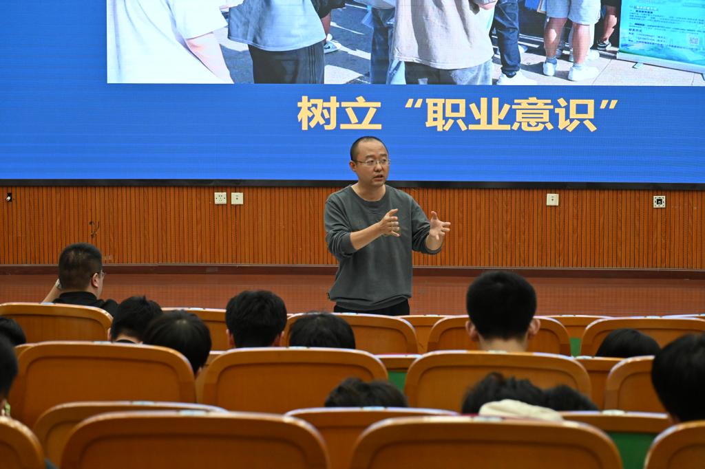 赵裕民从“你的选择是什么”“你为你的选择做了哪些努力”两个问题引入,为2026届毕业生全面分析了当前就业形势,介绍了生命、生活、生产、生涯四者的关系,从建立职业意识、勇敢去做、打造个人IP、强化风险意识、明确求职意向等方面对2026届毕业生进行了系统指导。他提醒学生要做好受挫心理准备,提升求职心理韧性,及时与老师、家长进行交流。最后,赵裕民向学生介绍了学校生涯咨询与就业指导辅导员工作室,欢迎毕业生咨询交流。