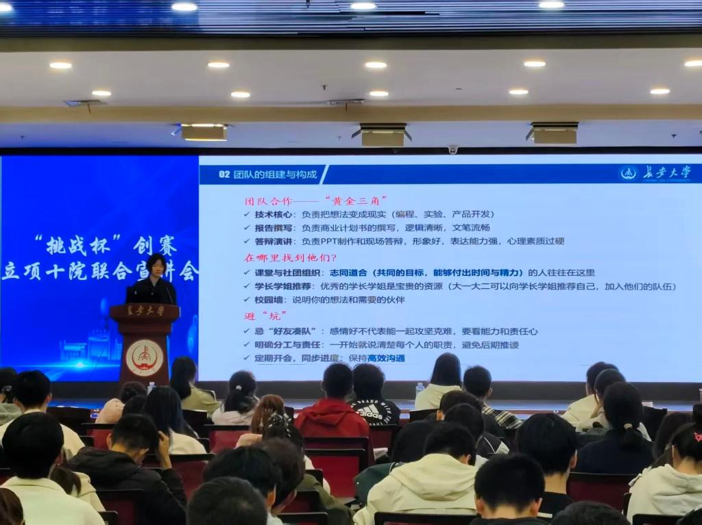 为进一步提升学生创新实践素养,点燃学生对科技创新的探索热情,充分调动学生参与科创赛事的主动性,2025年10月11日,能电学院、电控学院、汽车学院、机械学院、信息学院、资源学院、理学院、人文学院、水环学院、外国语学院十院联合举办的长安大学2025年“挑战杯”大学生创业计划竞赛十院联合宣讲会于长安文化艺术中心三楼多功能厅成功开展。本次宣讲会邀请了往届“挑战杯”竞赛的优秀团队代表分享他们的经验和心得,为参赛者提供详尽的赛事信息和宝贵的参赛经验。
