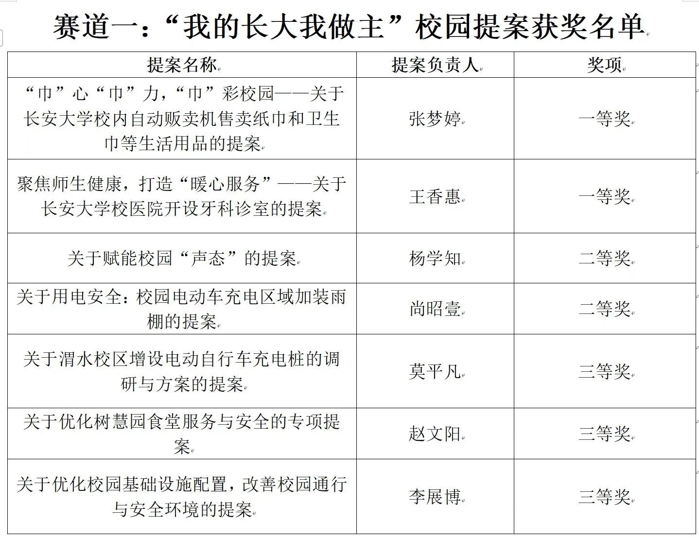 后续,两大赛道一等奖作品,将作为学院代表晋级校级“长大杯”决赛。同时针对“校园提案”赛道的优质作品,学生会将积极对接,持续跟进进度,及时向同学们同步,确保将切实可行的提案转化为行动,切实服务于同学。